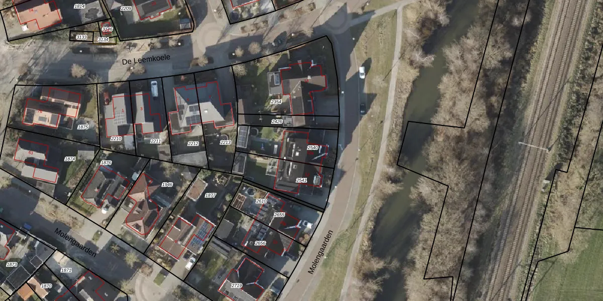 Het perceel waarop Molengaarden 12-a staat heeft een oppervlakte van 361 m². Dit is een groot perceel. De perceeloppervlakte wordt geregistreerd door het Kadaster. Gedetailleerde informatie over de maten van dit perceel kunt u vinden in het rapport Kadastrale kaart met maatvoering van Molengaarden 12-a.