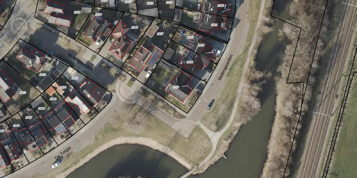 Het perceel waarop Molengaarden 8 staat heeft een oppervlakte van 561 m². Dit is een groot perceel. De perceeloppervlakte wordt geregistreerd door het Kadaster. Gedetailleerde informatie over de maten van dit perceel kunt u vinden in het rapport Kadastrale kaart met maatvoering van Molengaarden 8.
