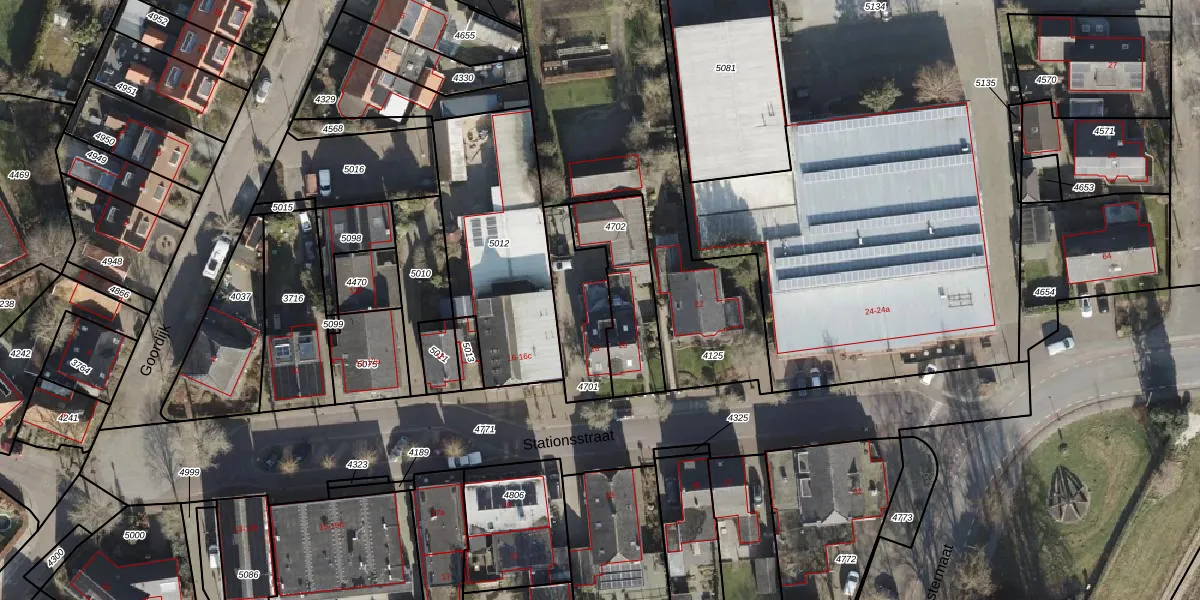 Stationsstraat 18 is gelegen op kadastraal perceel GBG00D4701. Deze kadastrale aanduiding is uniek en wordt gebruikt door het Kadaster om eigendomsrechten en andere zakelijke rechten vast te leggen. Het perceel maakt onderdeel uit van de kadastrale gemeente Gramsbergen.
