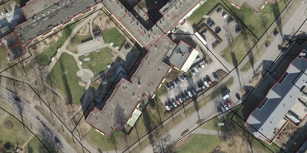 Het perceel waarop Voorstraat 2-K108 staat heeft een oppervlakte van 4760 m². Dit is een zeer groot perceel. De perceeloppervlakte wordt geregistreerd door het Kadaster. Gedetailleerde informatie over de maten van dit perceel kunt u vinden in het rapport Kadastrale kaart met maatvoering van Voorstraat 2-K108.