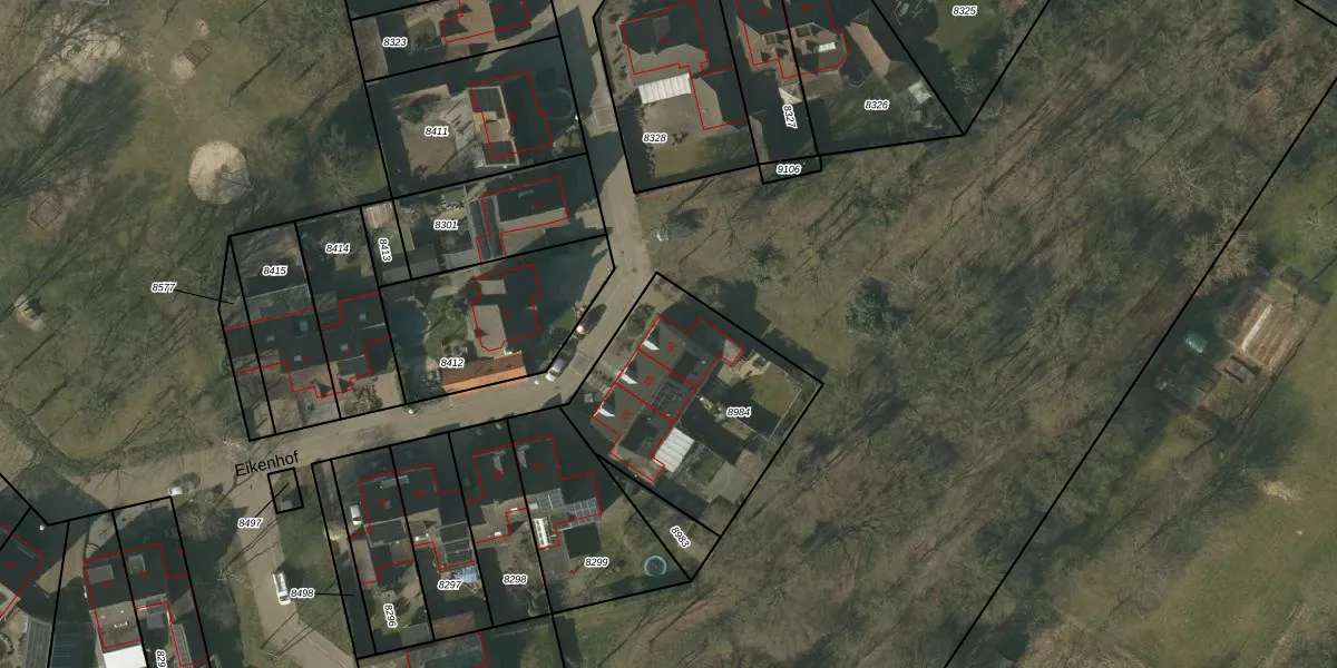 Het perceel waarop Eikenhof 30 staat heeft een oppervlakte van 822 m². Dit is een groot perceel. De perceeloppervlakte wordt geregistreerd door het Kadaster. Gedetailleerde informatie over de maten van dit perceel kunt u vinden in het rapport Kadastrale kaart met maatvoering van Eikenhof 30.