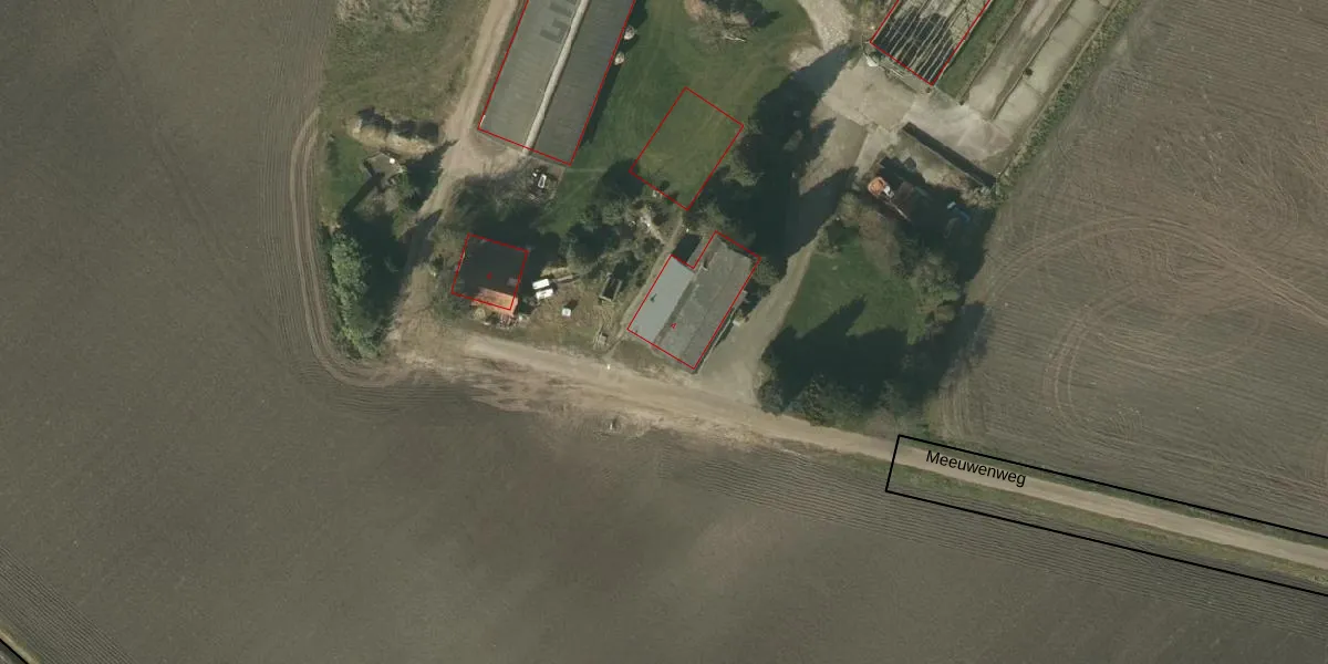 Het perceel waarop Meeuwenweg 4 staat heeft een oppervlakte van 10,5 ha. Dit is een zeer groot perceel. De perceeloppervlakte wordt geregistreerd door het Kadaster. Gedetailleerde informatie over de maten van dit perceel kunt u vinden in het rapport Kadastrale kaart met maatvoering van Meeuwenweg 4.