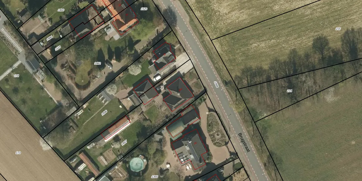 Het perceel waarop Brugstraat 16-a staat heeft een oppervlakte van 1660 m². Dit is een zeer groot perceel. De perceeloppervlakte wordt geregistreerd door het Kadaster. Gedetailleerde informatie over de maten van dit perceel kunt u vinden in het rapport Kadastrale kaart met maatvoering van Brugstraat 16-a.