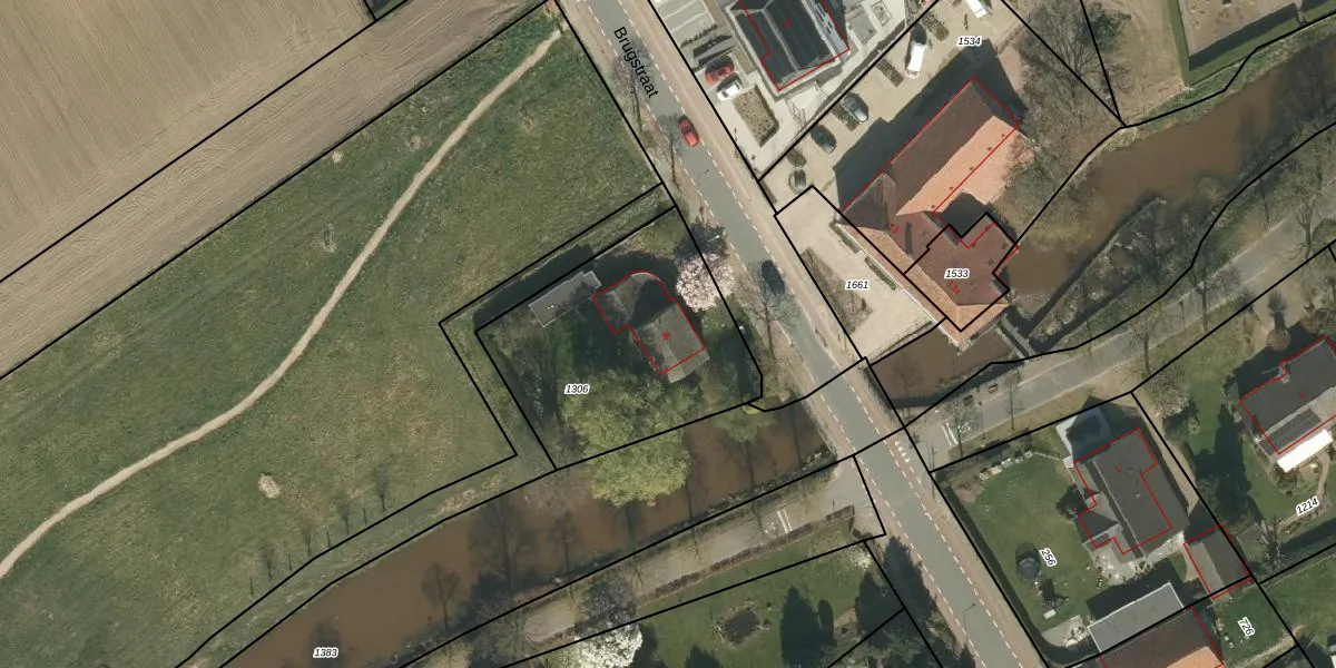 Het perceel waarop Brugstraat 36 staat heeft een oppervlakte van 980 m². Dit is een groot perceel. De perceeloppervlakte wordt geregistreerd door het Kadaster. Gedetailleerde informatie over de maten van dit perceel kunt u vinden in het rapport Kadastrale kaart met maatvoering van Brugstraat 36.