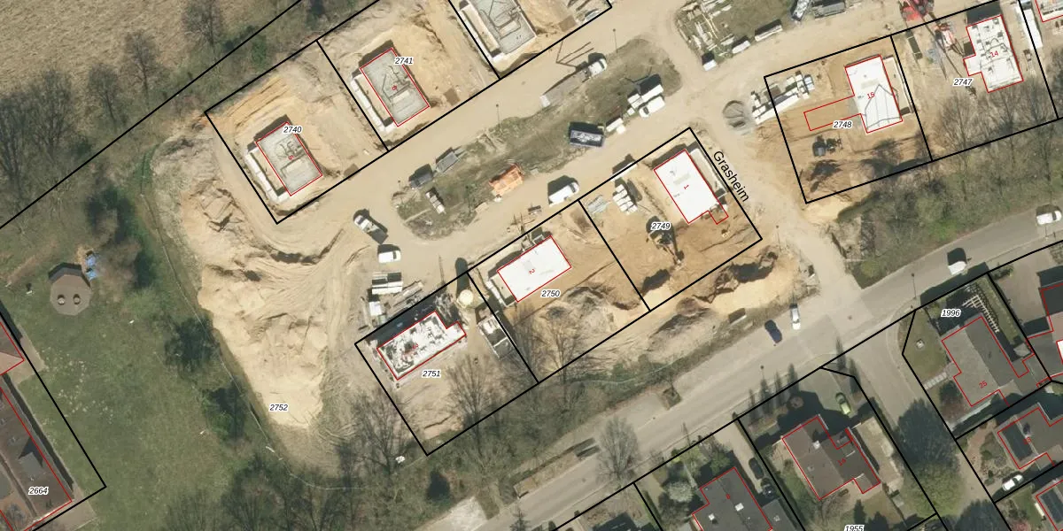 Het perceel waarop Grasheim 2 staat heeft een oppervlakte van 625 m². Dit is een groot perceel. De perceeloppervlakte wordt geregistreerd door het Kadaster. Gedetailleerde informatie over de maten van dit perceel kunt u vinden in het rapport Kadastrale kaart met maatvoering van Grasheim 2.