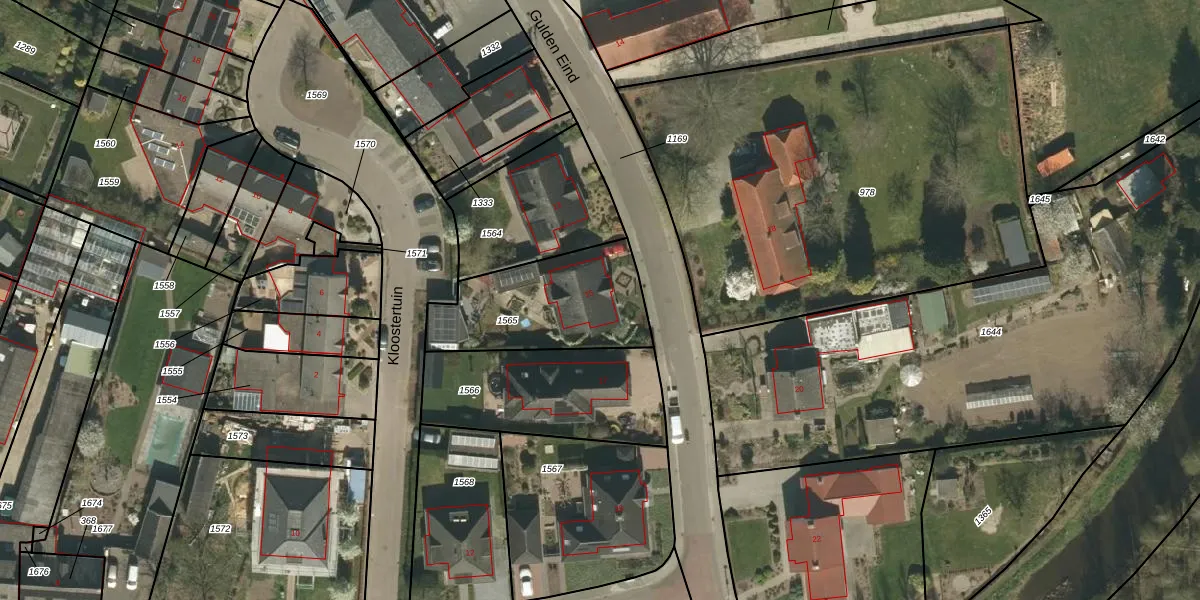 Het perceel waarop Gulden Eind 15 staat heeft een oppervlakte van 500 m². Dit is een groot perceel. De perceeloppervlakte wordt geregistreerd door het Kadaster. Gedetailleerde informatie over de maten van dit perceel kunt u vinden in het rapport Kadastrale kaart met maatvoering van Gulden Eind 15.
