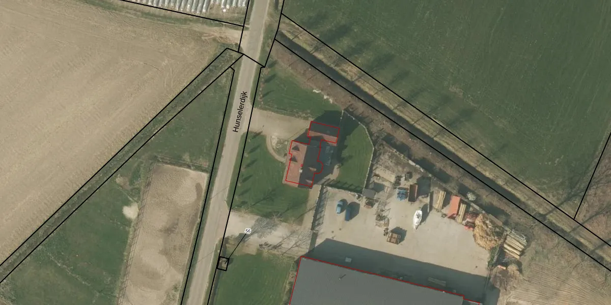Het perceel waarop Hunselerdijk 8 staat heeft een oppervlakte van 6,5 ha. Dit is een zeer groot perceel. De perceeloppervlakte wordt geregistreerd door het Kadaster. Gedetailleerde informatie over de maten van dit perceel kunt u vinden in het rapport Kadastrale kaart met maatvoering van Hunselerdijk 8.