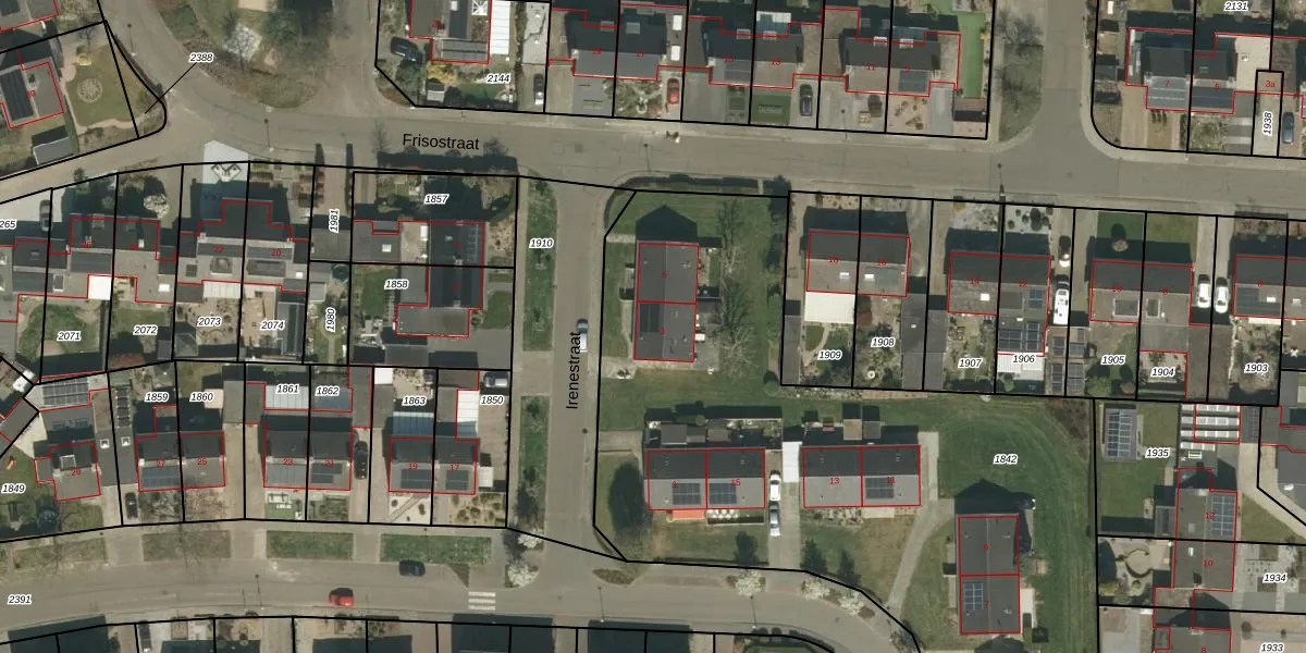 Het perceel waarop Irenestraat 3 staat heeft een oppervlakte van 5765 m². Dit is een zeer groot perceel. De perceeloppervlakte wordt geregistreerd door het Kadaster. Gedetailleerde informatie over de maten van dit perceel kunt u vinden in het rapport Kadastrale kaart met maatvoering van Irenestraat 3.