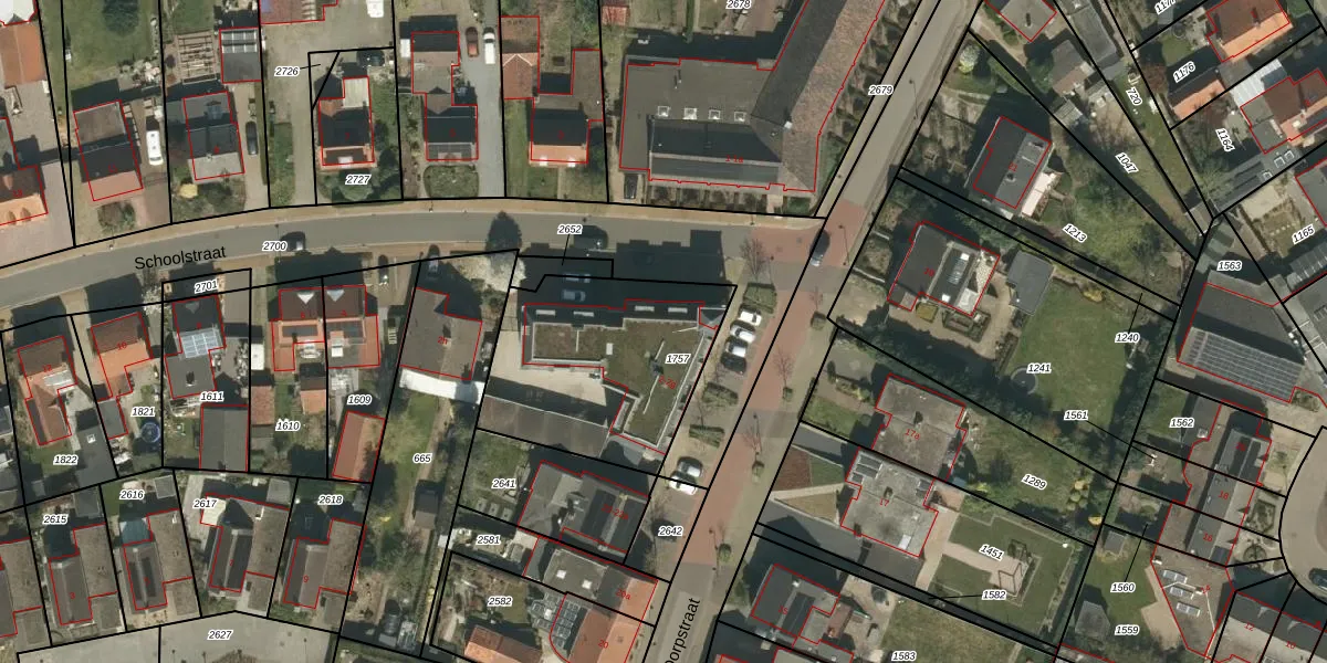 Het perceel waarop Schoolstraat 2-c staat heeft een oppervlakte van 845 m². Dit is een groot perceel. De perceeloppervlakte wordt geregistreerd door het Kadaster. Gedetailleerde informatie over de maten van dit perceel kunt u vinden in het rapport Kadastrale kaart met maatvoering van Schoolstraat 2-c.