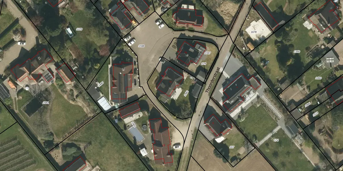 Thoorderstraat 17 is gelegen op kadastraal perceel GTM00D1482. Deze kadastrale aanduiding is uniek en wordt gebruikt door het Kadaster om eigendomsrechten en andere zakelijke rechten vast te leggen. Het perceel maakt onderdeel uit van de kadastrale gemeente Grathem.