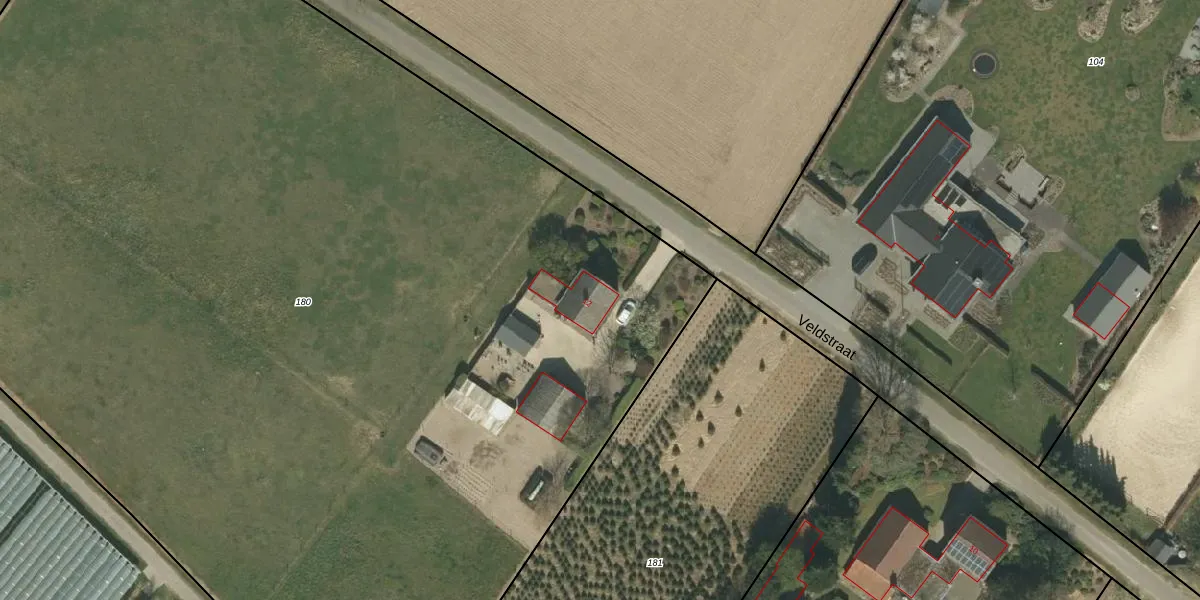 Veldstraat 12 is gelegen op kadastraal perceel HHS00V180. Deze kadastrale aanduiding is uniek en wordt gebruikt door het Kadaster om eigendomsrechten en andere zakelijke rechten vast te leggen. Het perceel maakt onderdeel uit van de kadastrale gemeente Heythuysen.