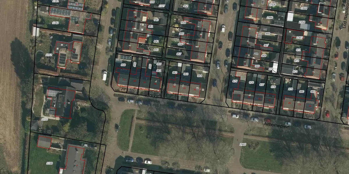 Het perceel waarop Airborneplein 43 staat heeft een oppervlakte van 164 m². Dit is een middelgroot perceel. De perceeloppervlakte wordt geregistreerd door het Kadaster. Gedetailleerde informatie over de maten van dit perceel kunt u vinden in het rapport Kadastrale kaart met maatvoering van Airborneplein 43.