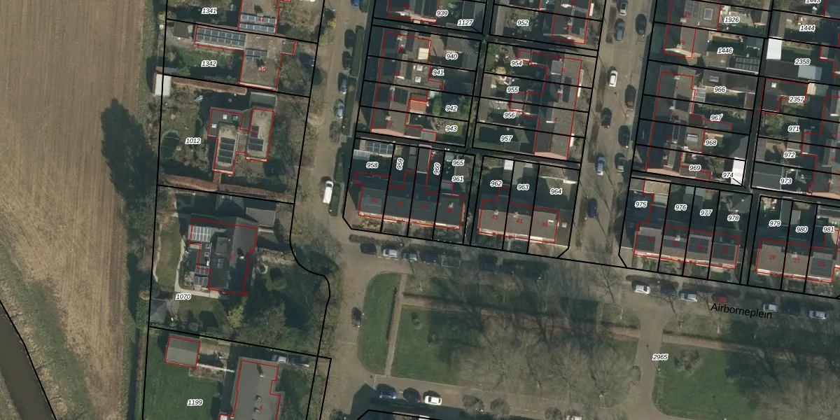 Het perceel waarop Airborneplein 47 staat heeft een oppervlakte van 129 m². Dit is een middelgroot perceel. De perceeloppervlakte wordt geregistreerd door het Kadaster. Gedetailleerde informatie over de maten van dit perceel kunt u vinden in het rapport Kadastrale kaart met maatvoering van Airborneplein 47.