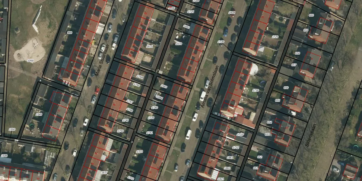 Het perceel waarop Amalia van Solmslaan 19 staat heeft een oppervlakte van 148 m². Dit is een middelgroot perceel. De perceeloppervlakte wordt geregistreerd door het Kadaster. Gedetailleerde informatie over de maten van dit perceel kunt u vinden in het rapport Kadastrale kaart met maatvoering van Amalia van Solmslaan 19.