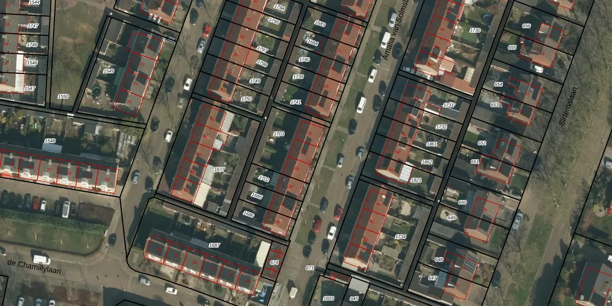 Het perceel waarop Amalia van Solmslaan 31 staat heeft een oppervlakte van 397 m². Dit is een groot perceel. De perceeloppervlakte wordt geregistreerd door het Kadaster. Gedetailleerde informatie over de maten van dit perceel kunt u vinden in het rapport Kadastrale kaart met maatvoering van Amalia van Solmslaan 31.