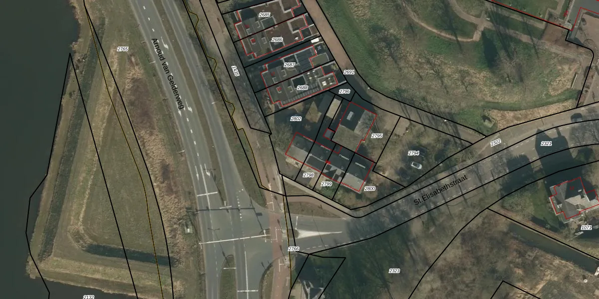 Arnoud van Gelderweg 9 is gelegen op kadastraal perceel GVE00B2802. Deze kadastrale aanduiding is uniek en wordt gebruikt door het Kadaster om eigendomsrechten en andere zakelijke rechten vast te leggen. Het perceel maakt onderdeel uit van de kadastrale gemeente Grave.