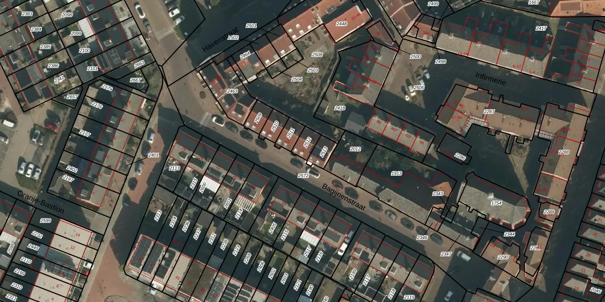 Gebruik de zoekbalk of klik op een perceel voor informatie over de adressen binnen dit perceel.