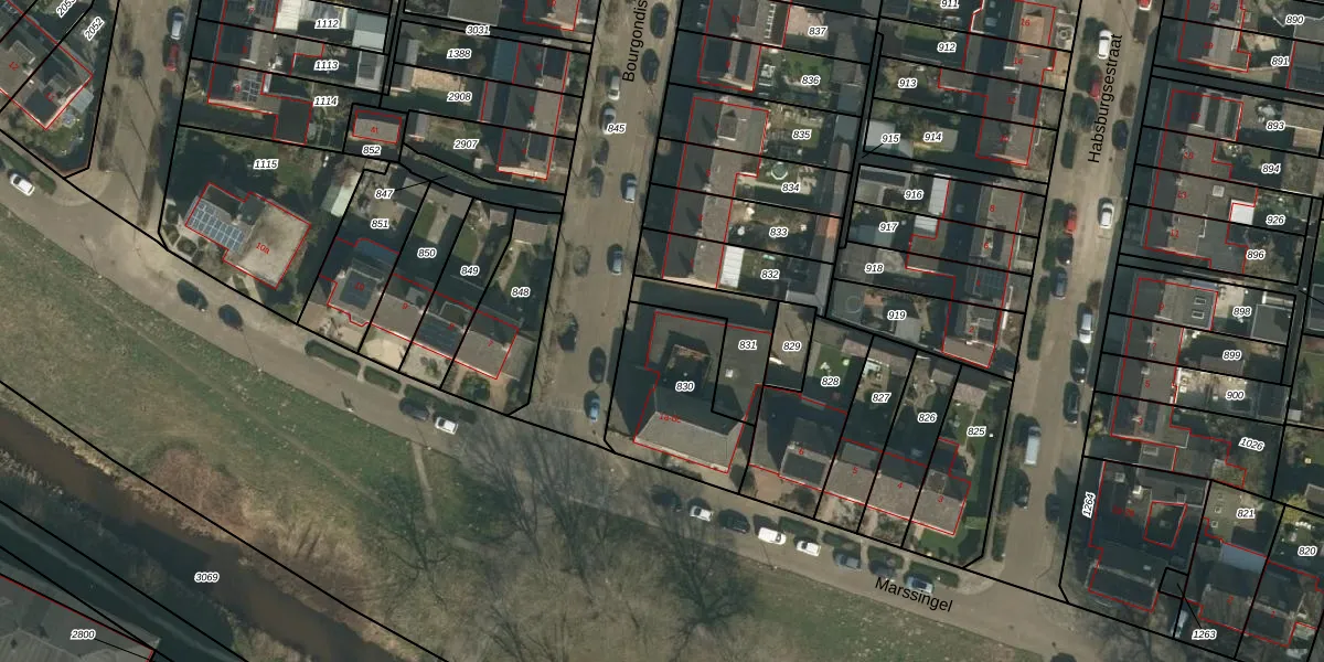Het perceel waarop Bourgondischestraat 1-a staat heeft een oppervlakte van 433 m². Dit is een groot perceel. De perceeloppervlakte wordt geregistreerd door het Kadaster. Gedetailleerde informatie over de maten van dit perceel kunt u vinden in het rapport Kadastrale kaart met maatvoering van Bourgondischestraat 1-a.