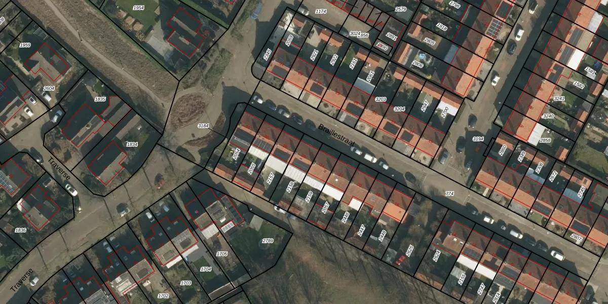 Het perceel waarop Braillestraat 26 staat heeft een oppervlakte van 173 m². Dit is een middelgroot perceel. De perceeloppervlakte wordt geregistreerd door het Kadaster. Gedetailleerde informatie over de maten van dit perceel kunt u vinden in het rapport Kadastrale kaart met maatvoering van Braillestraat 26.