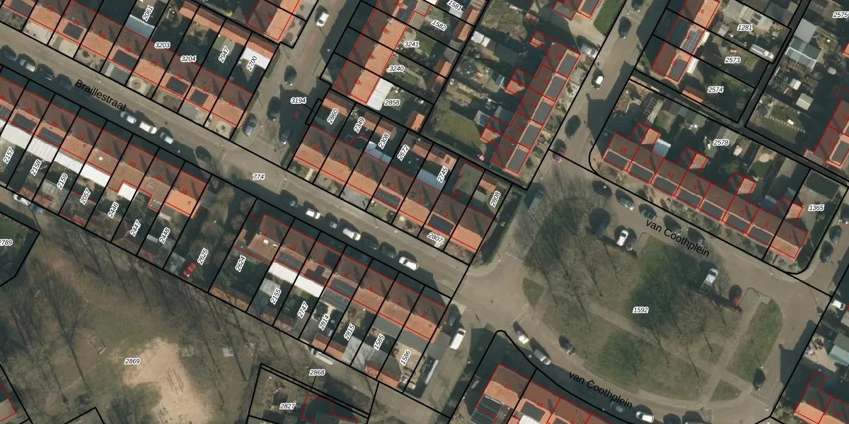 Het perceel waarop Braillestraat 5 staat heeft een oppervlakte van 152 m². Dit is een middelgroot perceel. De perceeloppervlakte wordt geregistreerd door het Kadaster. Gedetailleerde informatie over de maten van dit perceel kunt u vinden in het rapport Kadastrale kaart met maatvoering van Braillestraat 5.