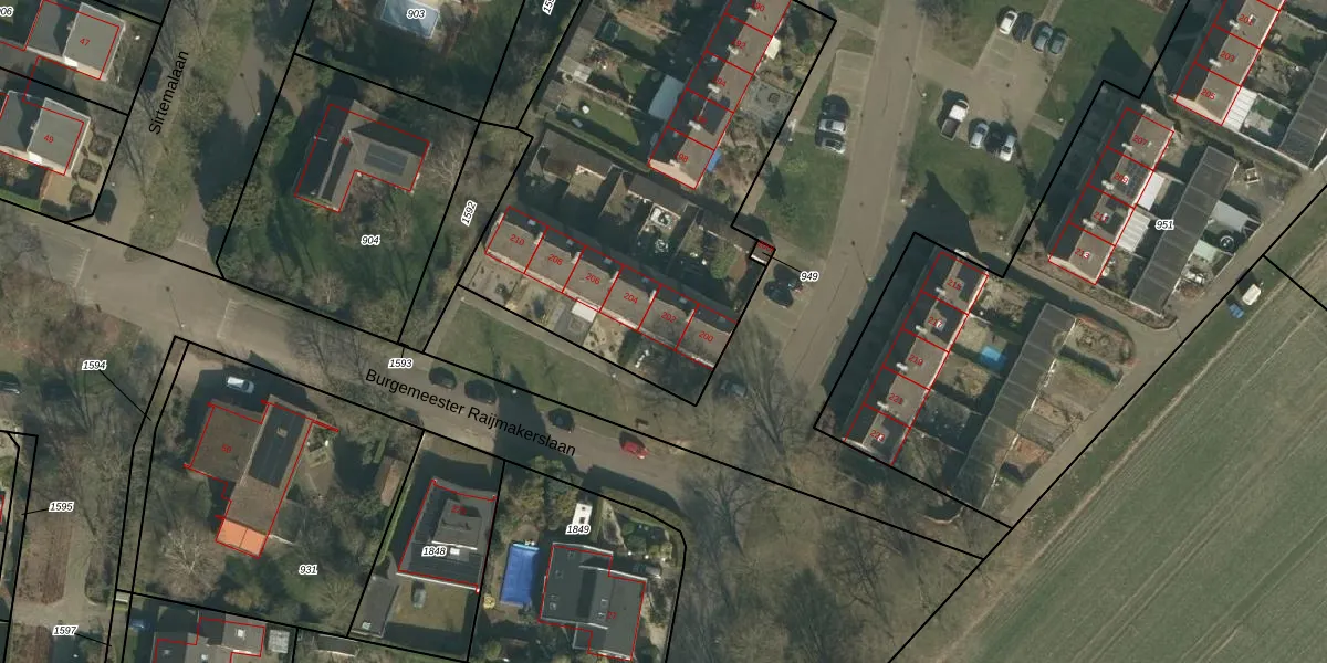 Het perceel waarop Burgemeester Raijmakerslaan 202 staat heeft een oppervlakte van 4269 m². Dit is een zeer groot perceel. De perceeloppervlakte wordt geregistreerd door het Kadaster. Gedetailleerde informatie over de maten van dit perceel kunt u vinden in het rapport Kadastrale kaart met maatvoering van Burgemeester Raijmakerslaan 202.