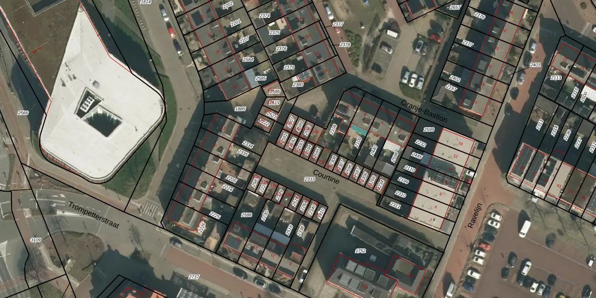 Het perceel waarop Courtine 21-p staat heeft een oppervlakte van 18 m². Dit is een klein perceel. De perceeloppervlakte wordt geregistreerd door het Kadaster. Gedetailleerde informatie over de maten van dit perceel kunt u vinden in het rapport Kadastrale kaart met maatvoering van Courtine 21-p.