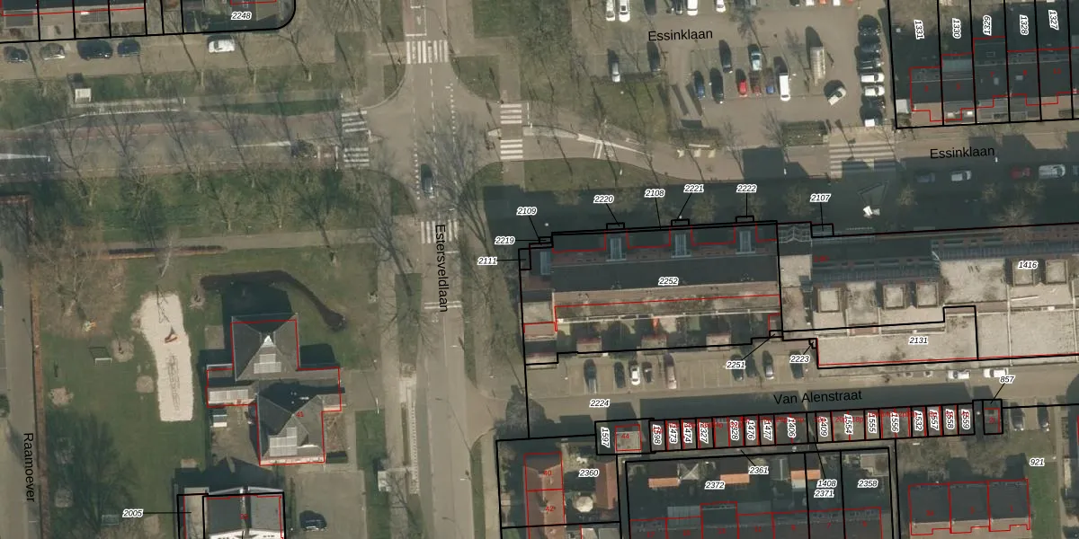 Het perceel waarop Essinklaan 4 staat heeft een oppervlakte van 1037 m². Dit is een zeer groot perceel. De perceeloppervlakte wordt geregistreerd door het Kadaster. Gedetailleerde informatie over de maten van dit perceel kunt u vinden in het rapport Kadastrale kaart met maatvoering van Essinklaan 4.