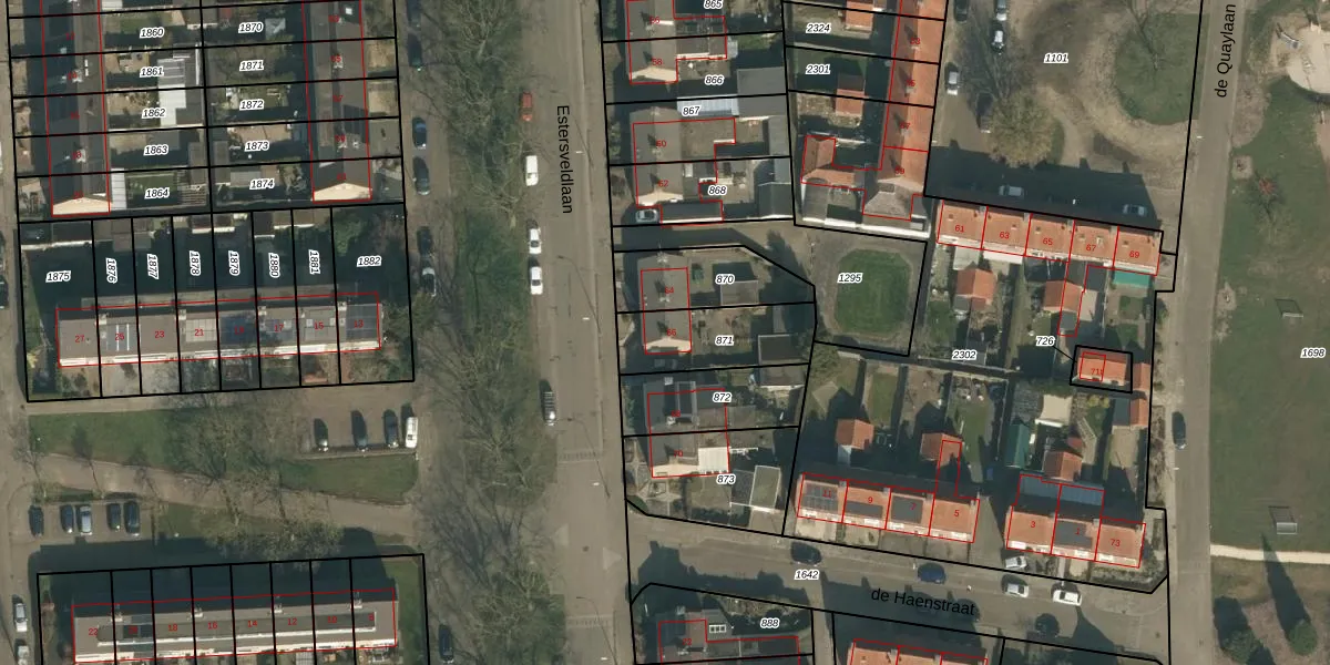 Het perceel waarop Estersveldlaan 66 staat heeft een oppervlakte van 272 m². Dit is een middelgroot perceel. De perceeloppervlakte wordt geregistreerd door het Kadaster. Gedetailleerde informatie over de maten van dit perceel kunt u vinden in het rapport Kadastrale kaart met maatvoering van Estersveldlaan 66.