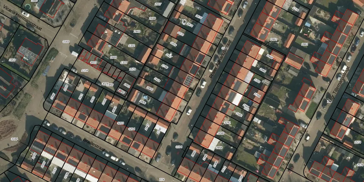Het perceel waarop Frater Adrianusstraat 23 staat heeft een oppervlakte van 213 m². Dit is een middelgroot perceel. De perceeloppervlakte wordt geregistreerd door het Kadaster. Gedetailleerde informatie over de maten van dit perceel kunt u vinden in het rapport Kadastrale kaart met maatvoering van Frater Adrianusstraat 23.
