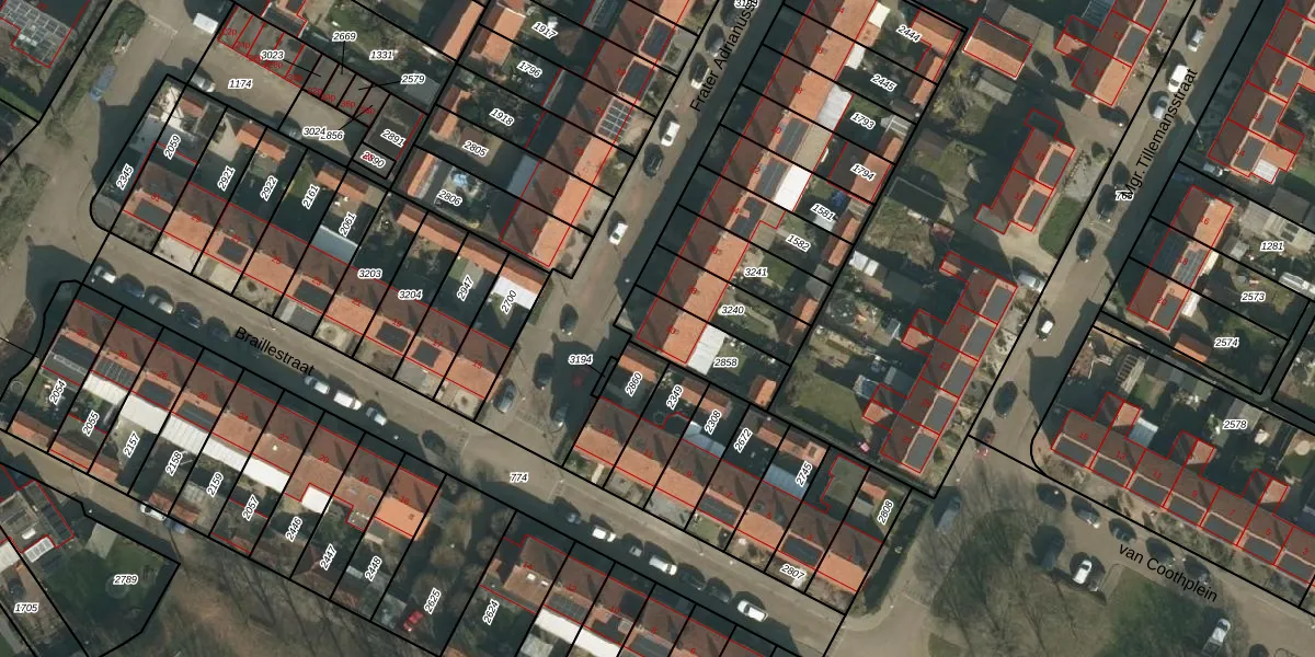 Het perceel waarop Frater Adrianusstraat 30 staat heeft een oppervlakte van 209 m². Dit is een middelgroot perceel. De perceeloppervlakte wordt geregistreerd door het Kadaster. Gedetailleerde informatie over de maten van dit perceel kunt u vinden in het rapport Kadastrale kaart met maatvoering van Frater Adrianusstraat 30.