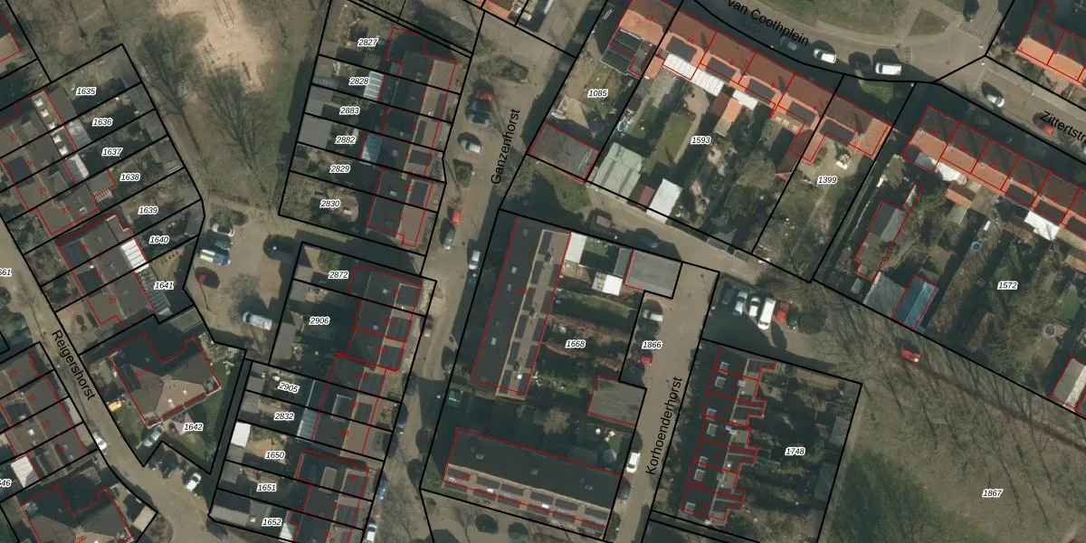 Het perceel waarop Ganzenhorst 7 staat heeft een oppervlakte van 1793 m². Dit is een zeer groot perceel. De perceeloppervlakte wordt geregistreerd door het Kadaster. Gedetailleerde informatie over de maten van dit perceel kunt u vinden in het rapport Kadastrale kaart met maatvoering van Ganzenhorst 7.
