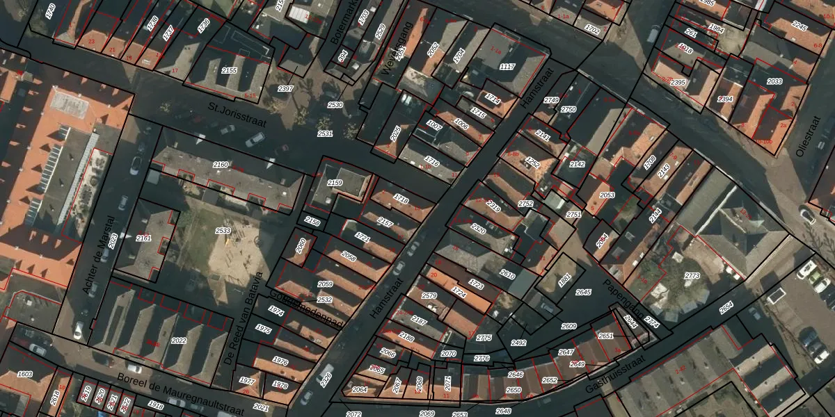 Hamstraat 13 is gelegen op kadastraal perceel GVE00B1718. Deze kadastrale aanduiding is uniek en wordt gebruikt door het Kadaster om eigendomsrechten en andere zakelijke rechten vast te leggen. Het perceel maakt onderdeel uit van de kadastrale gemeente Grave.