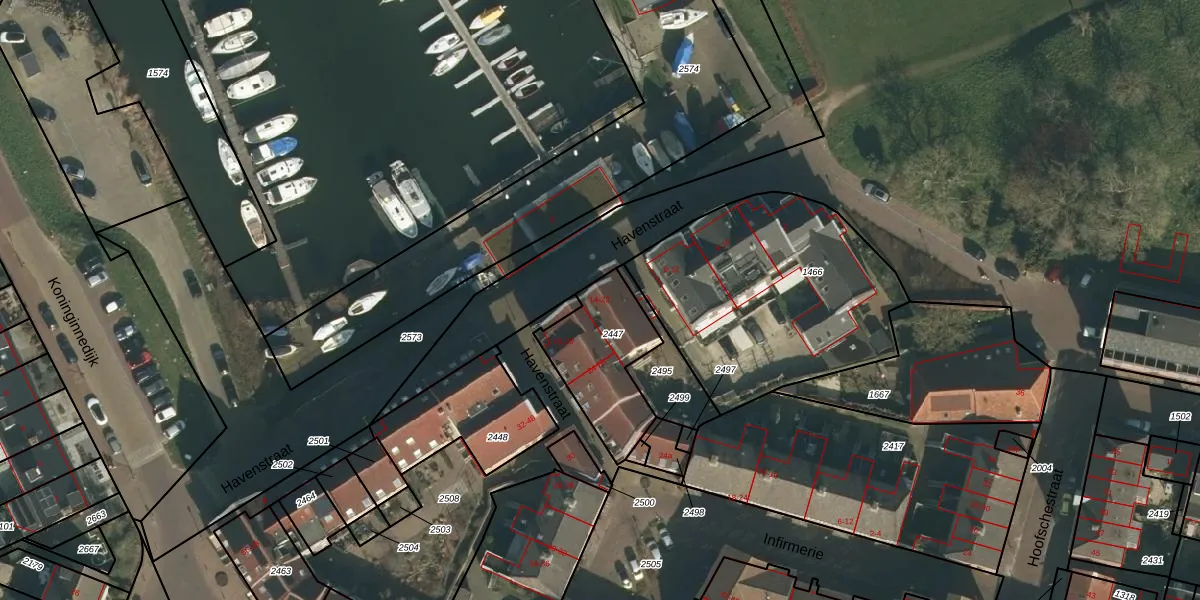 Havenstraat 14 is gelegen op kadastraal perceel GVE00B2447. Deze kadastrale aanduiding is uniek en wordt gebruikt door het Kadaster om eigendomsrechten en andere zakelijke rechten vast te leggen. Het perceel maakt onderdeel uit van de kadastrale gemeente Grave.