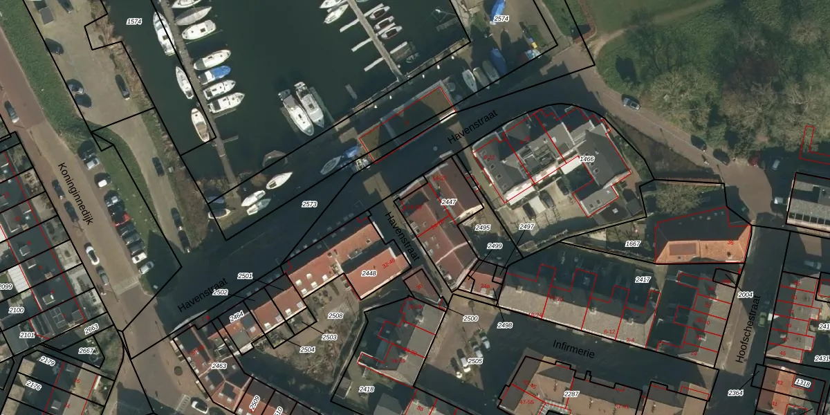 Havenstraat 16 is gelegen op kadastraal perceel GVE00B2447. Deze kadastrale aanduiding is uniek en wordt gebruikt door het Kadaster om eigendomsrechten en andere zakelijke rechten vast te leggen. Het perceel maakt onderdeel uit van de kadastrale gemeente Grave.