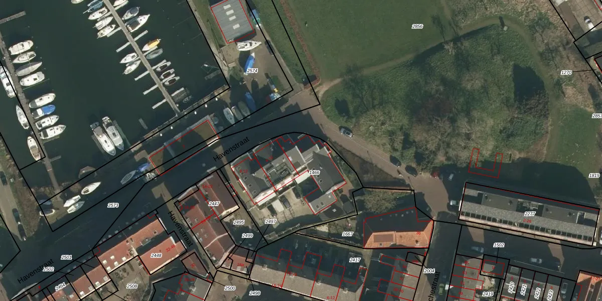 Havenstraat 2 is gelegen op kadastraal perceel GVE00B1466. Deze kadastrale aanduiding is uniek en wordt gebruikt door het Kadaster om eigendomsrechten en andere zakelijke rechten vast te leggen. Het perceel maakt onderdeel uit van de kadastrale gemeente Grave.