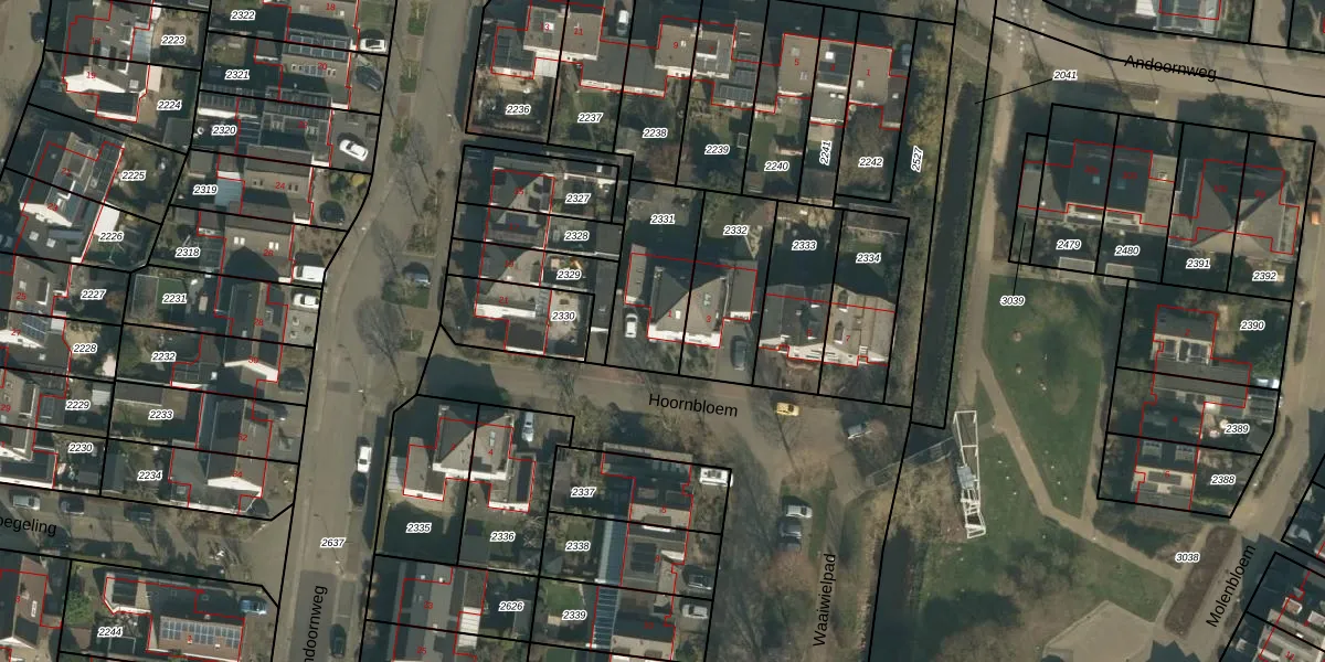 Gebruik de zoekbalk of klik op een perceel voor informatie over de adressen binnen dit perceel.