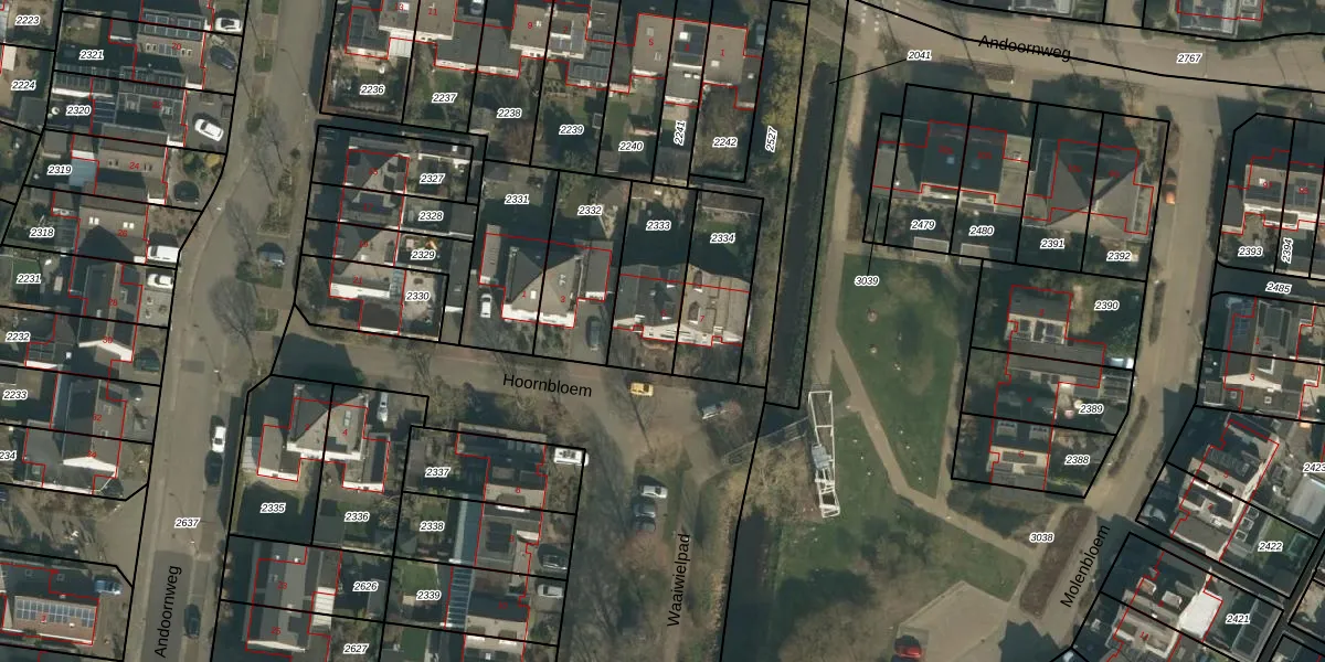 Het perceel waarop Hoornbloem 5 staat heeft een oppervlakte van 283 m². Dit is een middelgroot perceel. De perceeloppervlakte wordt geregistreerd door het Kadaster. Gedetailleerde informatie over de maten van dit perceel kunt u vinden in het rapport Kadastrale kaart met maatvoering van Hoornbloem 5.