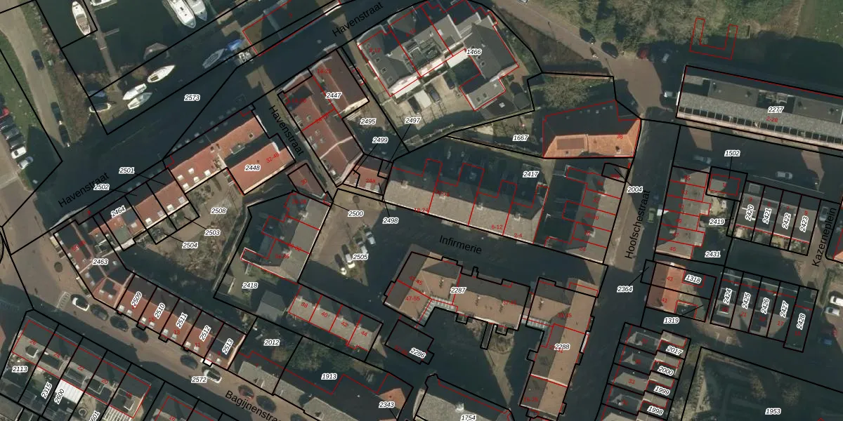 Het perceel waarop Infirmerie 18 staat heeft een oppervlakte van 1092 m². Dit is een zeer groot perceel. De perceeloppervlakte wordt geregistreerd door het Kadaster. Gedetailleerde informatie over de maten van dit perceel kunt u vinden in het rapport Kadastrale kaart met maatvoering van Infirmerie 18.