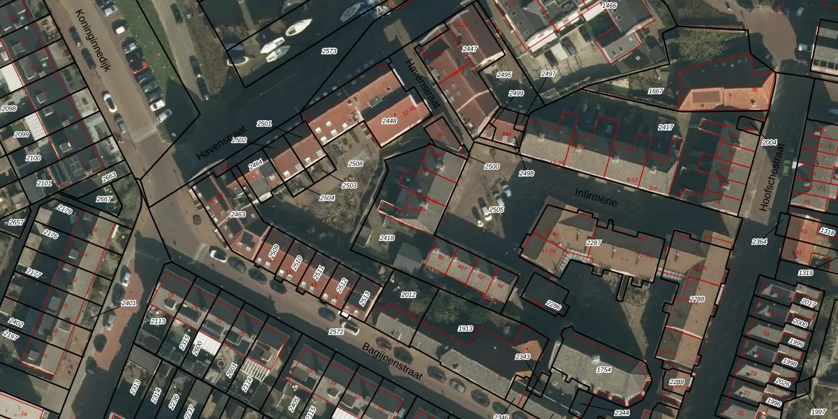 Infirmerie 34 is gelegen op kadastraal perceel GVE00B2418. Deze kadastrale aanduiding is uniek en wordt gebruikt door het Kadaster om eigendomsrechten en andere zakelijke rechten vast te leggen. Het perceel maakt onderdeel uit van de kadastrale gemeente Grave.