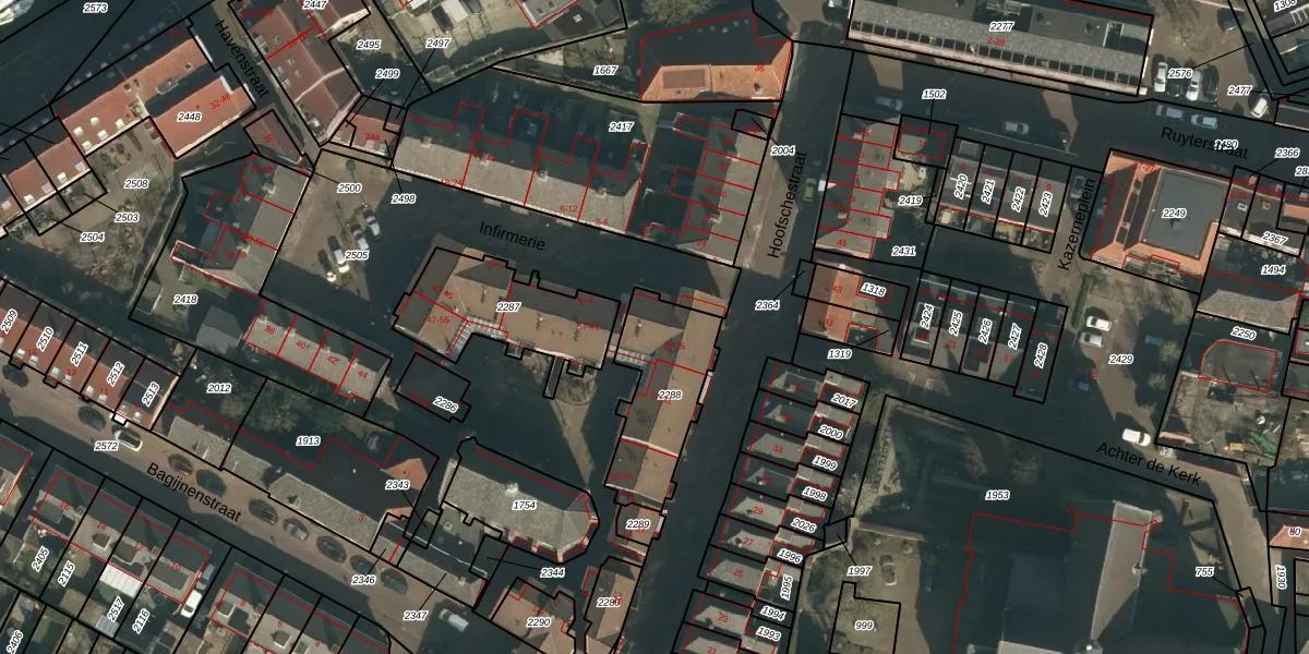 Het perceel waarop Infirmerie 35 staat heeft een oppervlakte van 362 m². Dit is een groot perceel. De perceeloppervlakte wordt geregistreerd door het Kadaster. Gedetailleerde informatie over de maten van dit perceel kunt u vinden in het rapport Kadastrale kaart met maatvoering van Infirmerie 35.