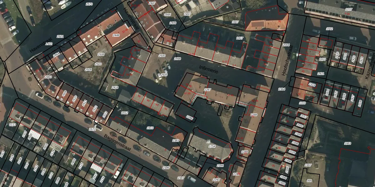 Het perceel waarop Infirmerie 47 staat heeft een oppervlakte van 395 m². Dit is een groot perceel. De perceeloppervlakte wordt geregistreerd door het Kadaster. Gedetailleerde informatie over de maten van dit perceel kunt u vinden in het rapport Kadastrale kaart met maatvoering van Infirmerie 47.