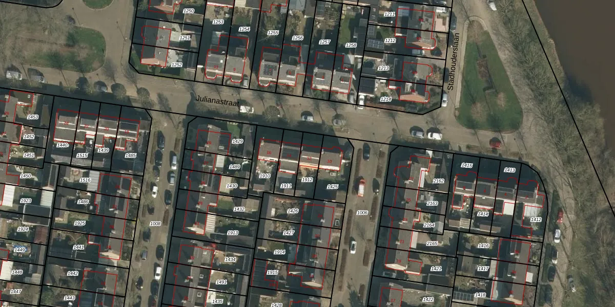 Het perceel waarop Julianastraat 12 staat heeft een oppervlakte van 141 m². Dit is een middelgroot perceel. De perceeloppervlakte wordt geregistreerd door het Kadaster. Gedetailleerde informatie over de maten van dit perceel kunt u vinden in het rapport Kadastrale kaart met maatvoering van Julianastraat 12.