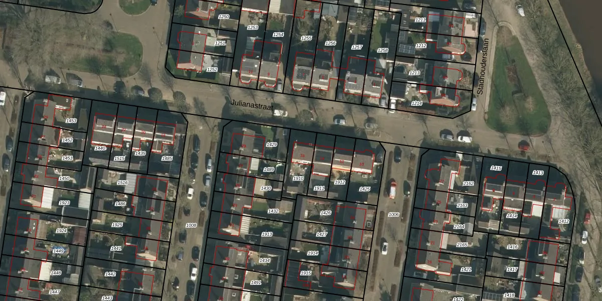 Julianastraat 16 is gelegen op kadastraal perceel GVE00A1910. Deze kadastrale aanduiding is uniek en wordt gebruikt door het Kadaster om eigendomsrechten en andere zakelijke rechten vast te leggen. Het perceel maakt onderdeel uit van de kadastrale gemeente Grave.