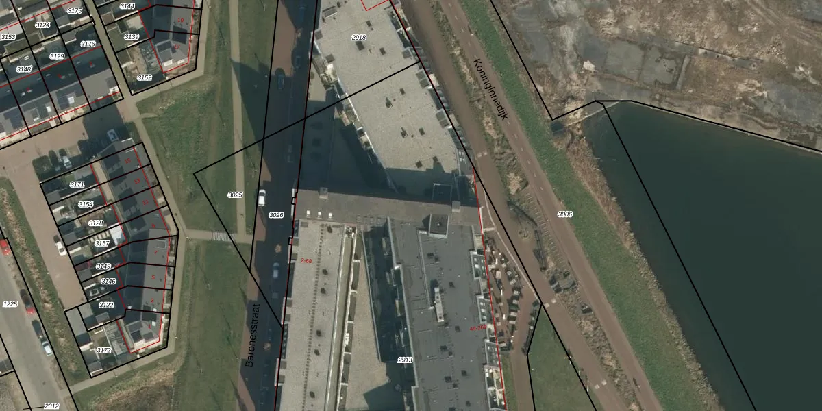 Het perceel waarop Koninginnedijk 202 staat heeft een oppervlakte van 6430 m². Dit is een zeer groot perceel. De perceeloppervlakte wordt geregistreerd door het Kadaster. Gedetailleerde informatie over de maten van dit perceel kunt u vinden in het rapport Kadastrale kaart met maatvoering van Koninginnedijk 202.