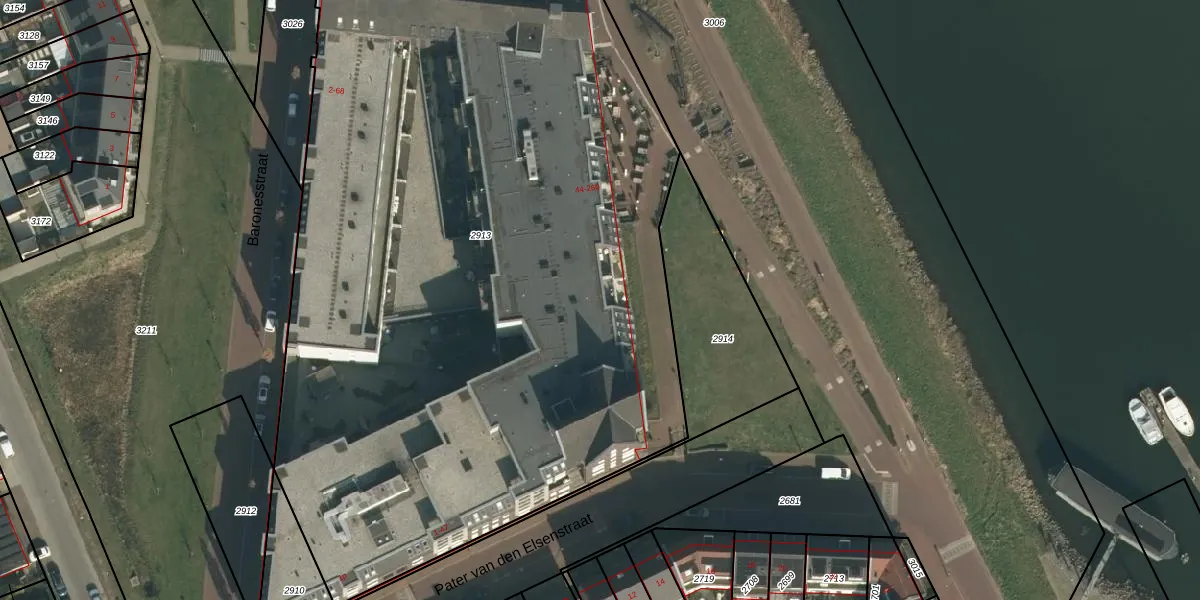 Het adres ligt op het perceel GVE00-A-2913, dat zich in de kadastrale gemeente Grave bevindt. De oppervlakte van het perceel is 6430 m². Dat is groter dan gemiddeld in Grave, waar de gemiddelde perceeloppervlakte op 3556,58 m² ligt. Het kleinste perceel in de kadastrale gemeente is 0 m² groot. De grootste perceeloppervlakte is 27,3 ha. Er zijn 147 adressen aanwezig op het perceel. De huidige grenzen van het perceel zijn digitaal in de Basisregistratie Kadaster (BRK) geregistreerd op 29-11-2012.