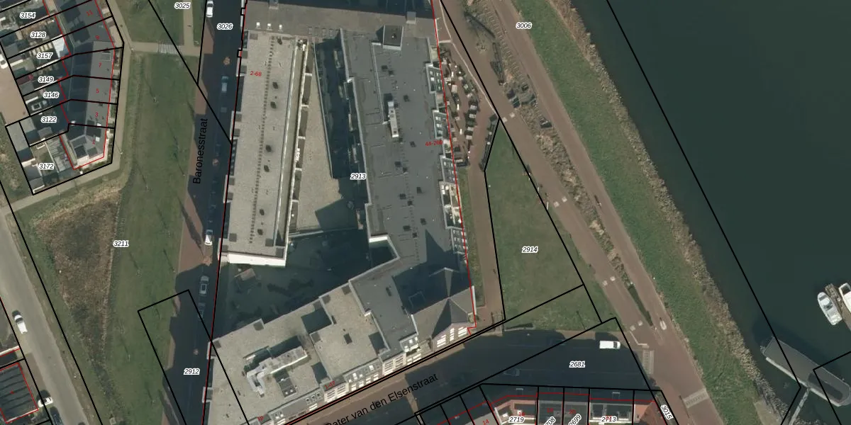 Het adres ligt op het perceel GVE00-A-2913, dat zich in de kadastrale gemeente Grave bevindt. De oppervlakte van het perceel is 6430 m². Dat is groter dan gemiddeld in Grave, waar de gemiddelde perceeloppervlakte op 3552,98 m² ligt. De grootste perceeloppervlakte in de kadastrale gemeente is 27,3 ha. De kleinste oppervlakte bedraagt 0 m². Op het perceel zijn 147 adressen aanwezig. De huidige grenzen van het perceel zijn digitaal in de Basisregistratie Kadaster (BRK) geregistreerd op 29-11-2012.