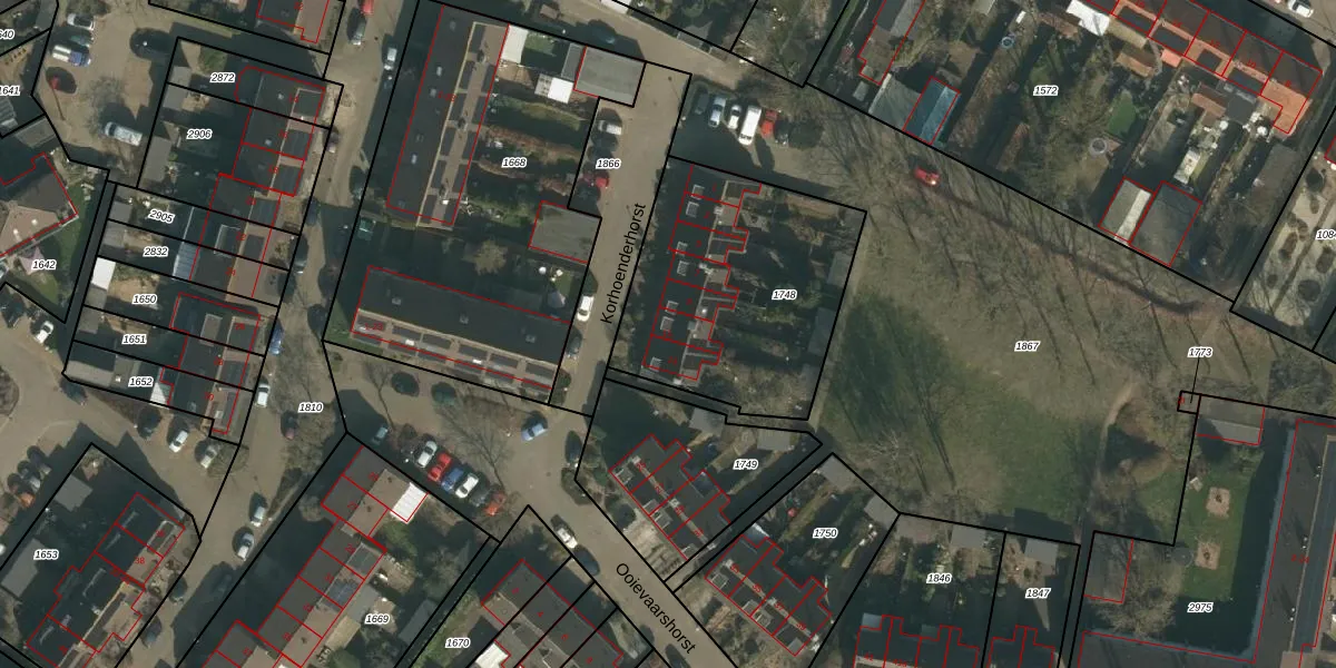 Het perceel waarop Korhoenderhorst 11 staat heeft een oppervlakte van 1030 m². Dit is een zeer groot perceel. De perceeloppervlakte wordt geregistreerd door het Kadaster. Gedetailleerde informatie over de maten van dit perceel kunt u vinden in het rapport Kadastrale kaart met maatvoering van Korhoenderhorst 11.