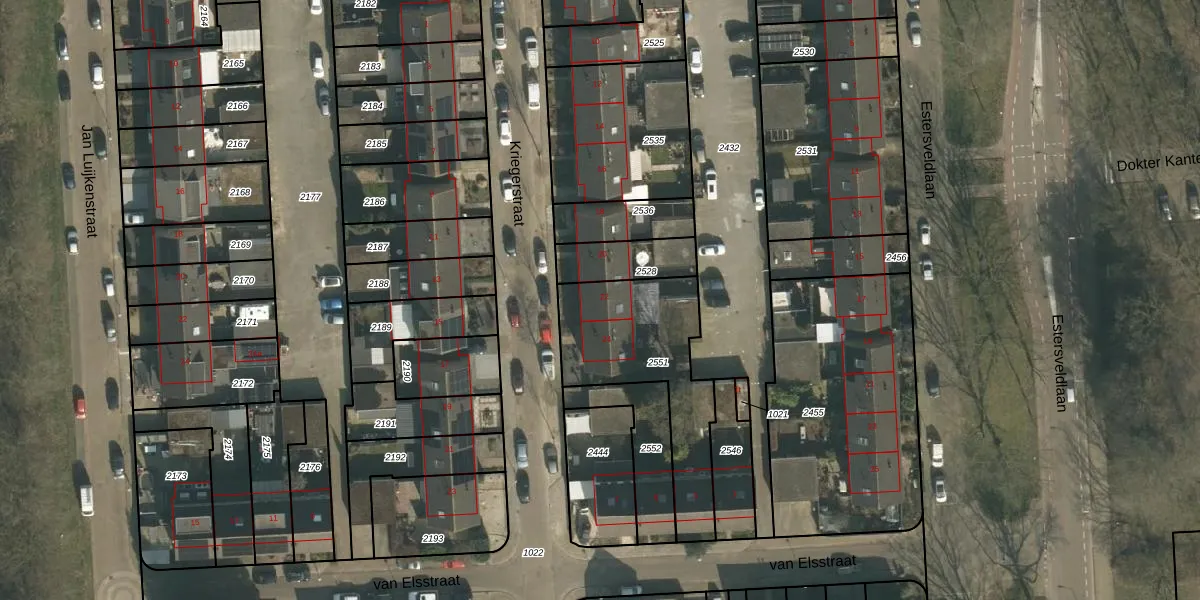 Het perceel waarop Kriegerstraat 22 staat heeft een oppervlakte van 571 m². Dit is een groot perceel. De perceeloppervlakte wordt geregistreerd door het Kadaster. Gedetailleerde informatie over de maten van dit perceel kunt u vinden in het rapport Kadastrale kaart met maatvoering van Kriegerstraat 22.