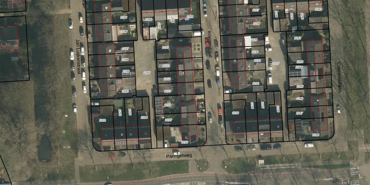 Gebruik de zoekbalk of klik op een perceel voor informatie over de adressen binnen dit perceel.