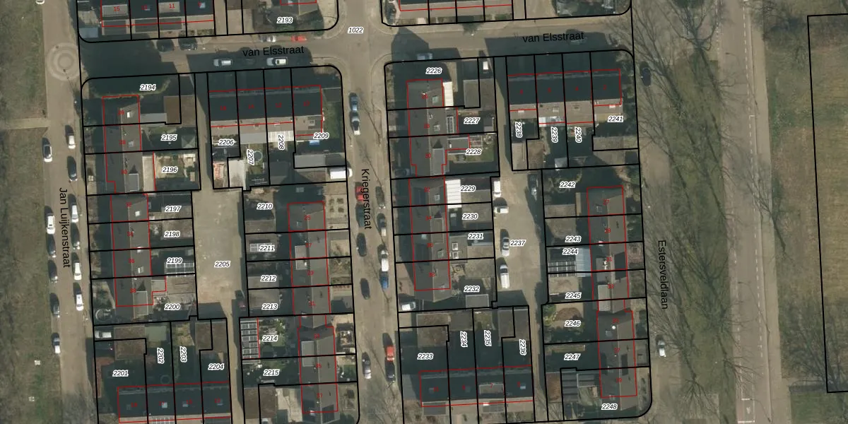 Het perceel waarop Kriegerstraat 34 staat heeft een oppervlakte van 155 m². Dit is een middelgroot perceel. De perceeloppervlakte wordt geregistreerd door het Kadaster. Gedetailleerde informatie over de maten van dit perceel kunt u vinden in het rapport Kadastrale kaart met maatvoering van Kriegerstraat 34.